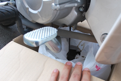 車体をセンタースタンド状態にする。