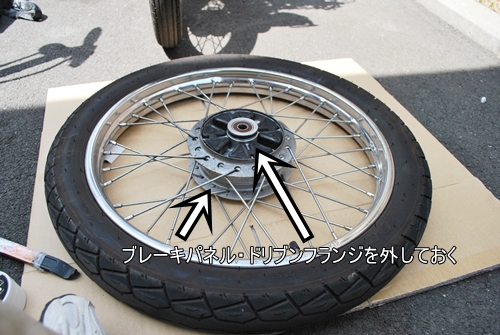あらかじめ、ブレーキパネル、スプロケットの着いたドリブンフランジを外しておく。