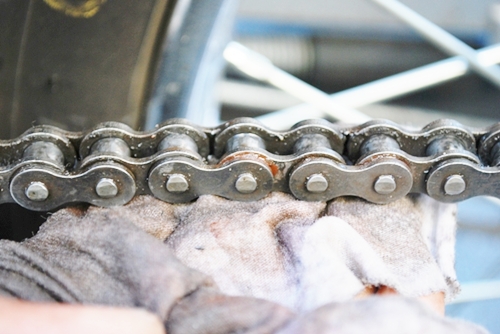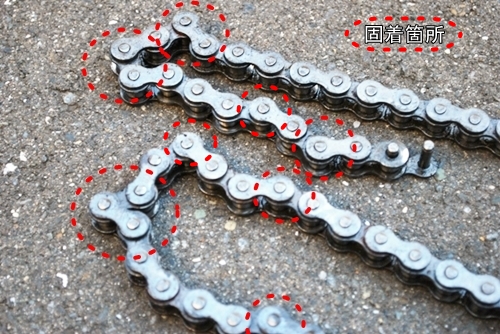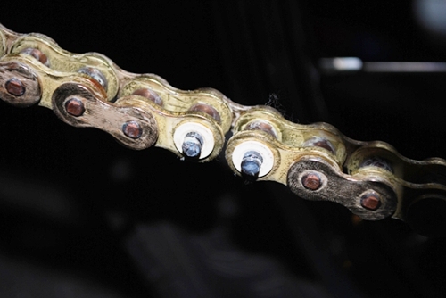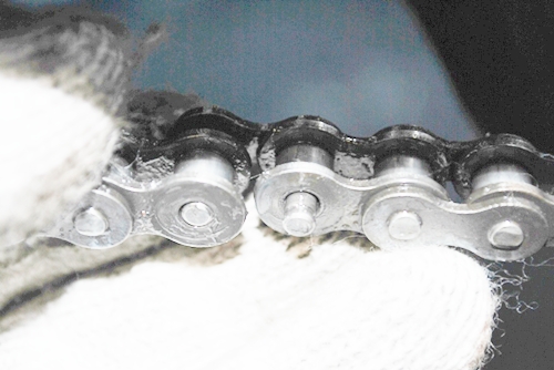 チェーンには最初から白い粘度の高いグリスが塗られている。