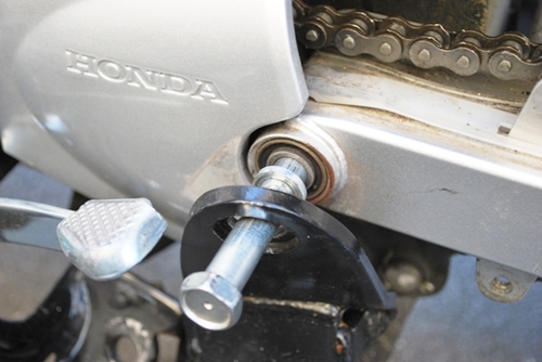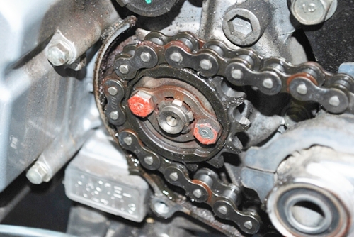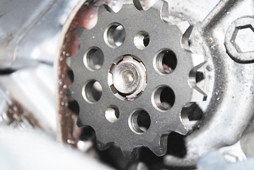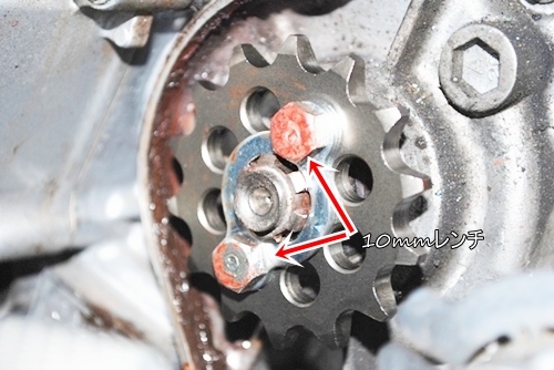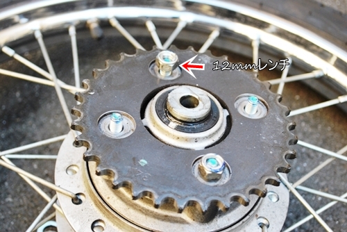 リヤのドリブンスプロケットは12mmレンチで4ヶ所外す。