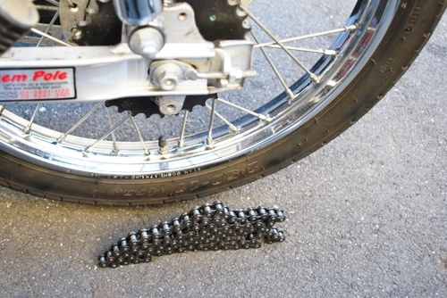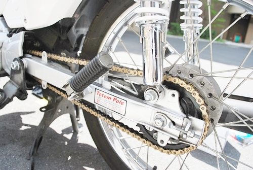 98リンクでありカットの必要がないカブ110に丁度良いチェーンだ。