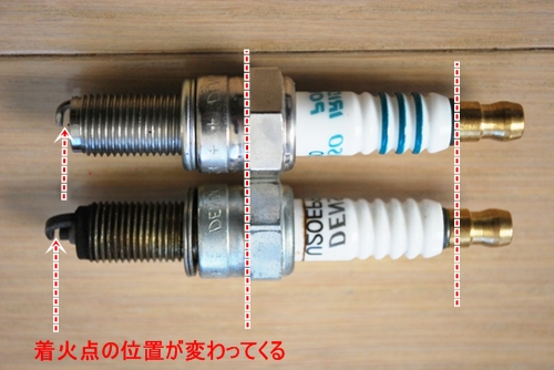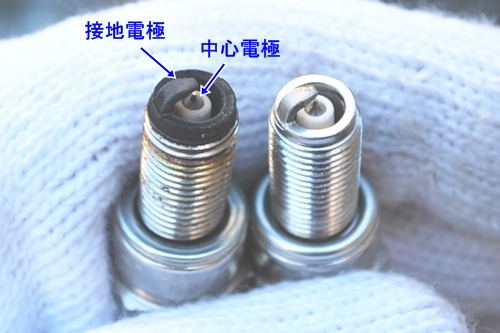 外した5,000km使用のプラグ(写真左)と新しいプラグ。
