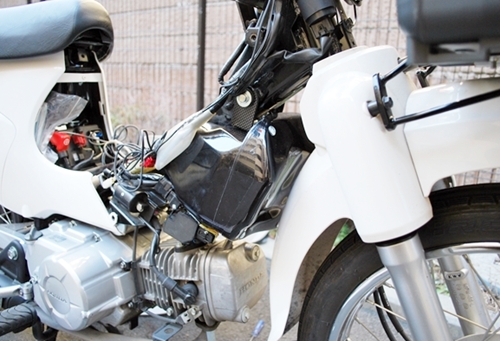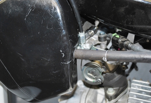4. スロットルボディやフロントフェンダにひっかかるので、フェンダを真っ直ぐ方向に少し戻す