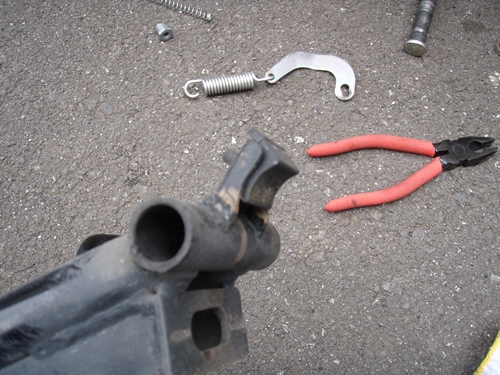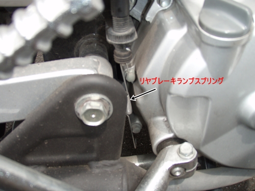 次にリヤブレーキランプ点灯調整アジャスタの下のスプリングを外す。
