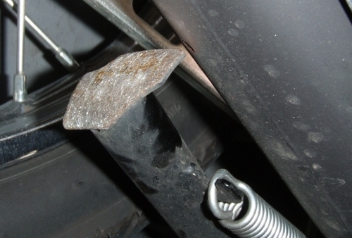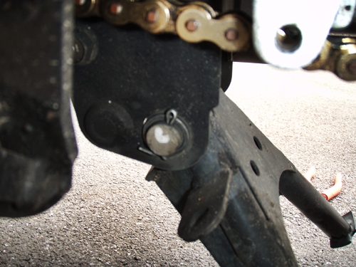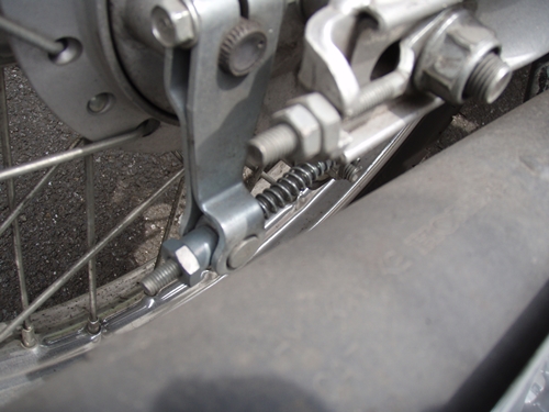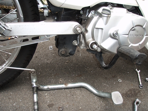 メインスタンドのシャフトはブレーキペダルと共締めされているのだ。