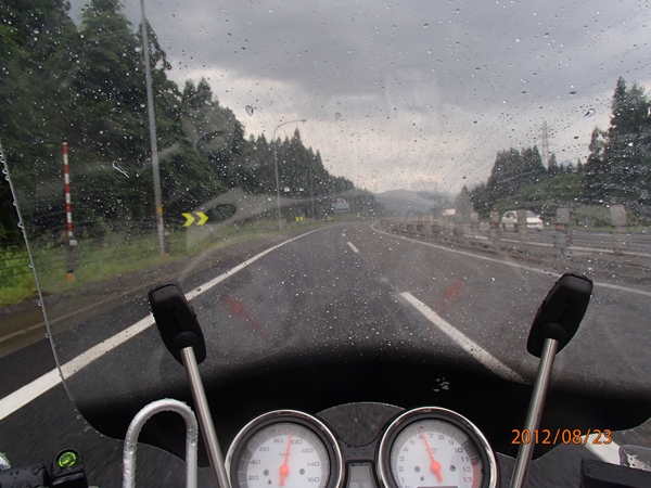大粒の雨がメッシュジャケットとズボンにぶつかってきます。