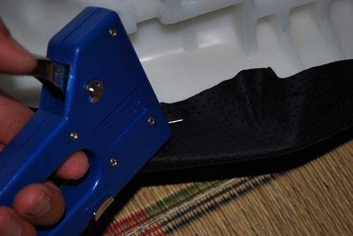 なるべくシワを無くすように伸ばしつつタッカーで打ち付けてゆく。